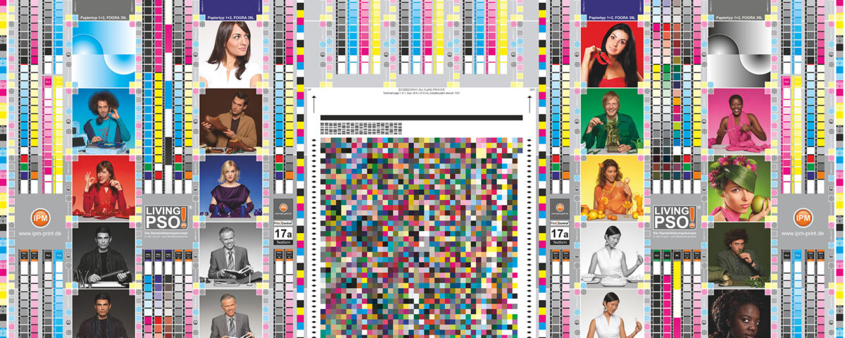 Wir drucken nach PSO – Prozess Standard Offset. Die jährliche Überprüfung haben wir bereits zum 11. Mal erfolgreich abgeschlossen. Dieser Standard stellt sicher, dass in der gesamten Produktionskette nach vorgegebenen Standards und Toleranzen gearbeitet wird und diese mittels Kontrollelementen und -geräten auch nachprüfbar sind. Und damit der Standard nicht zum kleinsten gemeinsamen Nenner wird, der nur einmal im Jahr überprüft wird, haben wir uns schon vor acht Jahren dazu entschlossen, das System täglich zu leben. Denn genau das bedeutet unsere Zertifizierung nach „Living PSO“. Dieser erweiterte Standard beinhaltet zum einen die übliche PSO, also ISO-Norm 12647-2 – Zertifizierung und zum anderen eine kontinuierliche Überprüfung auf weitere Qualitätskriterien.