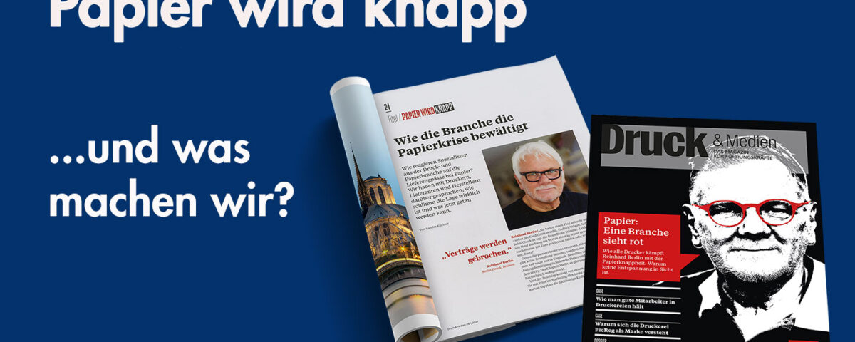 Wie reagieren Spezialisten aus der Druck- und Papierbranche auf die Lieferengpässe bei Papier? Druck & Medien hat mit Druckern, Lieferanten und Herstellern darüber gesprochen, wie schlimm die Lage wirklich ist und was jetzt getan werden kann. Für diesen Artikel wurde auch Unternehmensgründer und Namensgeber von BerlinDruck, Reinhard Berlin befragt. Lesen Sie hier einen Auszug des Artikels.